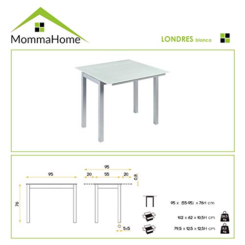MOMMA HOME Mesa de Cocina Extensible - Modelo Londres - Color Blanco/Plata...