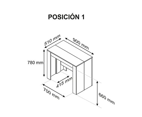 - Medidas posición cerrada: 90 cm (fondo) x 50 cm (ancho) x 78 cm (alto). Gracias a su habilidad extensible, se le pueden dar muchos usos: por ejemplo, puedes utilizarla como mesa de recibidor, mesa de cocina o como escritorio, y cuando tengas a toda la familia en casa extenderla al máximo y usarla como mesa de comedor