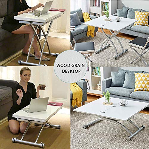 - 【Multifuncional】: creativo y versátil, mecanismo de elevación ajustable y diseño plegable extensible de escritorio para realizar la conversión entre mesa de café, mesa de comedor y escritorio de ordenador, adecuado para sala de estar, cocina, balcón y jardín.