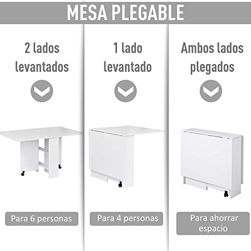 Outsunny HOMCOM Mesa Plegable de Madera con Ruedas Comedor Auxiliar Cocina Escritorio...
