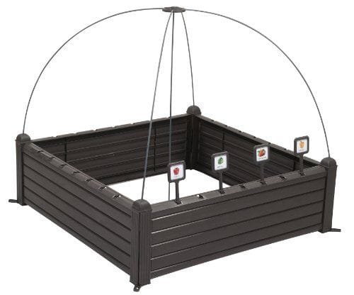 Tu mini huerto en casa. Con la gama de huertos urbanos de keter, podrá disfrutar de una experiencia creativa y entretenida con toda su familia. Construya su propio huerto en casa, ideal para espacios exteriores reducidos, porque no necesita mucho espacio para cultivar sus alimentos, puede hacerlo desde su balcón o terraza. Su elegante diseño de imitación madera combina a la perfección con cualquiera de los muebles de su jardín. Su fabricado con polipropileno inyectado hace que el mini huerto Raised Garden Bed sea resistente a cualquier condición climática. Este mini huerto urbano viene con marcadores de hileras de plantación y soportes metálicos para cubierta incluidos. Disponible en color marrón. Dimensiones del producto: 100 x 100 x 34 cm (Largo x Ancho x Alto).