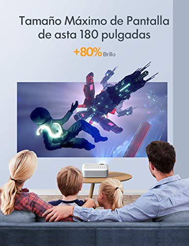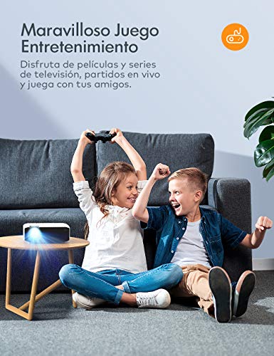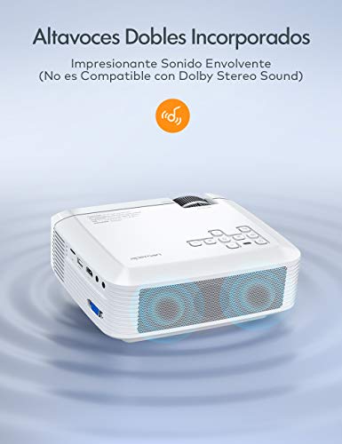 - MINI PROYECTOR SUPER RENTABLE: LED de 5000 lúmenes, 80% más brillante, compatible con 1080P, altavoces duales integrados para brindarle una experiencia de sonido envolvente de 360°.