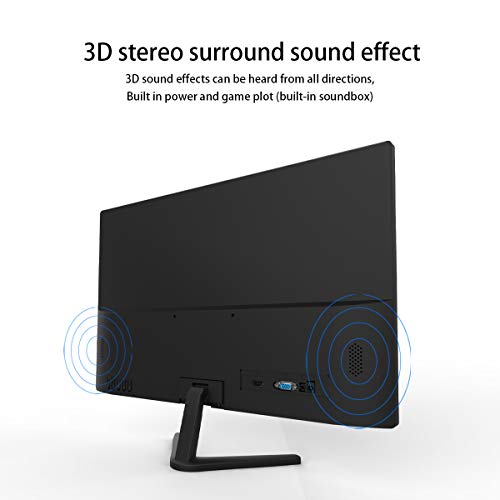 JOHNWILL – Monitor LCD plano de 21,5 pulgadas 60 Hz, Full HD 1080P sin parpadeo, altavoz HDMI VGA empotrado con protección antideslumbrante, monitor de escritorio de metal negro
