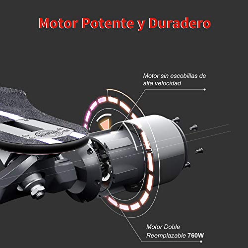 - 【Paseo de Gran Alcance & Sistema de Regeneración 】Con 2 motores potentes de 380W (760W vatios en total), Teamgee monopatín electrico alcanza velocidades máx. 35 km/h y 25 grados de inclinación. El sistema permite además recuperar la energía cinética en descensos o desaceleración.*Nota: el rendimiento real se verá afectado por el peso del usuario, las condiciones de la carretera y el nivel de la batería.