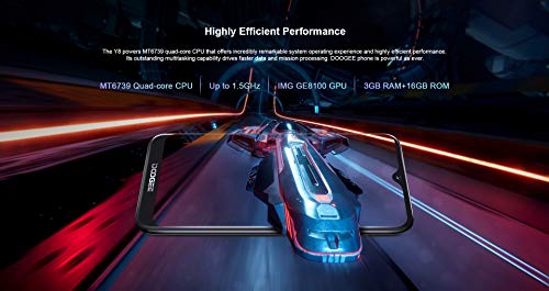 - Rendimiento extremadamente eficiente: el Y8 alimenta un procesador MT6739 de cuatro núcleos que brinda una experiencia de operación del sistema increíblemente notable y un rendimiento extremadamente eficiente. Su excelente capacidad multitarea permite un procesamiento más rápido de los datos y las misiones. El teléfono DOOGEE es más poderoso que nunca. (Procesador MT6739 de cuatro núcleos, hasta 1.5GHz, IMG GE8100 GPU, 3GB de RAM + 16GB de ROM)