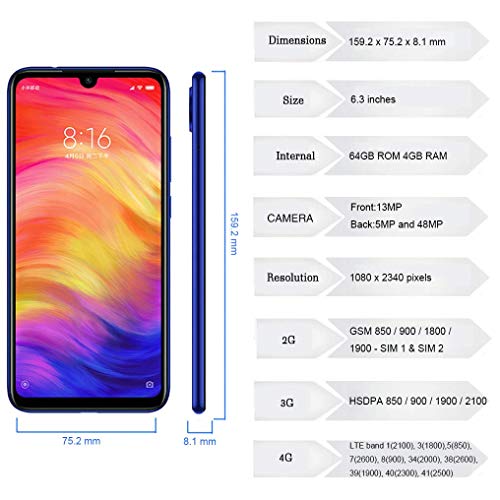 - Apariencia: los teléfonos inteligentes xiaomi redmi note 7 están hechos con un diseño de cuerpo de vidrio holográfico delgado de superficie completa, super duradera, protección duradera; la pantalla de caída redonda, de la solución principal de pantalla completa favorita del buque insignia, las pequeñas gotas también ocultan hábilmente la cámara frontal