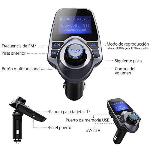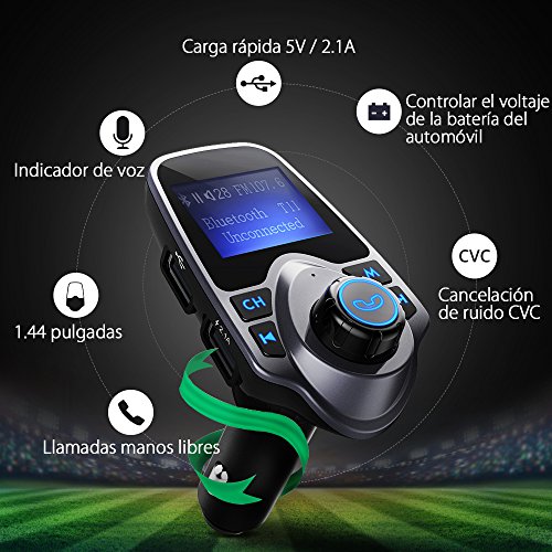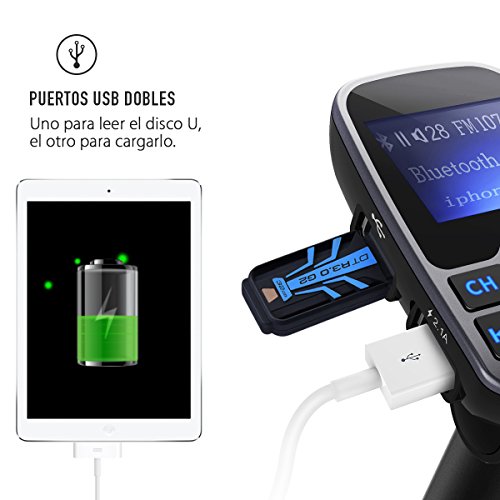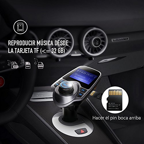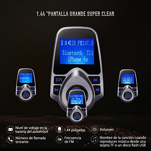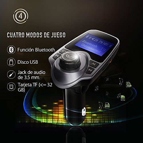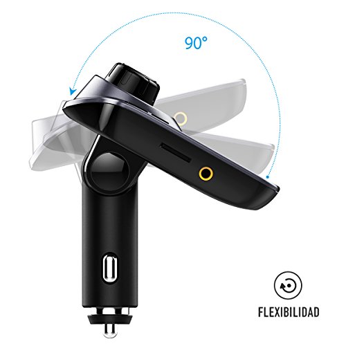 Mpow Transmisor Bluetooth FM Cargador del Coche de 1.44 Pulgadas del USB Kit sin Hilos con el Puerto de Entrada o Salida de 3.5mm Audio, Ranura para Tarjeta...