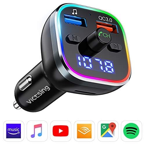 Transmisor FM Bluetooth 5.0 para Coche, [Luz LED Anillo] QC3.0 VicTsing Mini Transmisor Bluetooth Manos Libres con Siri Asistente, Reproductor MP3 Coche,...