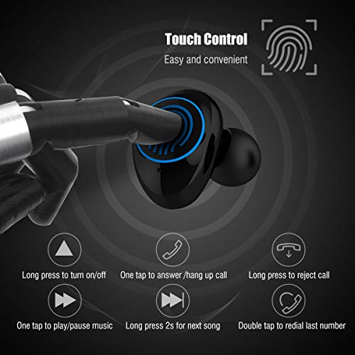 - [Calidad de Sonido HIFI & Cancelación de Ruido] El mini Bluetooth auriculares con control táctil puede tomar y rechazar llamadas. Al hacer llamadas, la persona en la otra línea puede escucharlo claramente a pesar de que el micrófono está en la oreja. La tecnología impermeable IP65, duradera y práctica, elimina los problemas con los auriculares con cable mientras practica deportes. El auriculares Bluetooth deporte monoaural con tecnología de cancelación de ruido CVC6.0 previene la interferenc