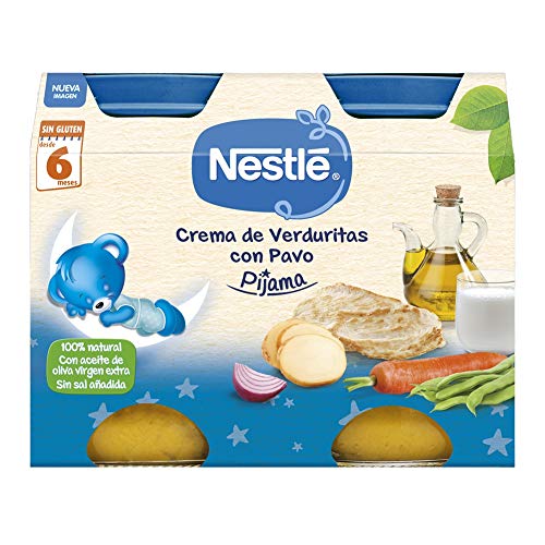 Nestlé Purés Pijama, Tarrito de puré de verduras y carne, variedad Crema de verduritas con Pavo – Para bebés a partir de 6 meses – Paquete de 6×2 Tarritos de 200g