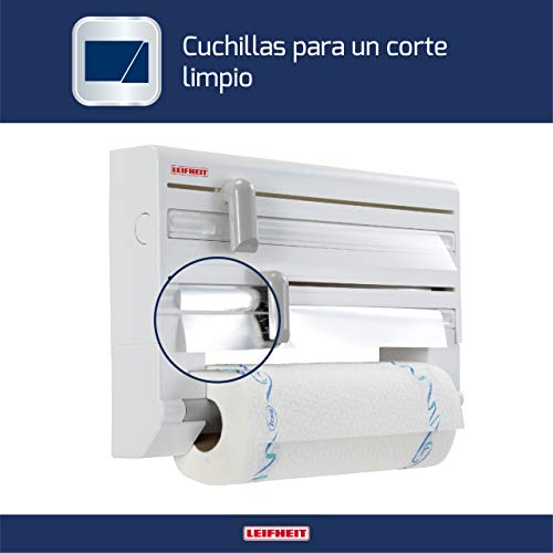 - Envío: 1 dispensador de pared Leifheit de 38 x 26 x 7 cm compuesto por 1 soporte de papel de cocina, 1 dispensador de papel de aluminio y 1 dispensador de película adhesiva; número de artículo 25703