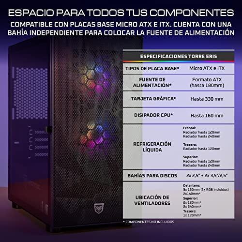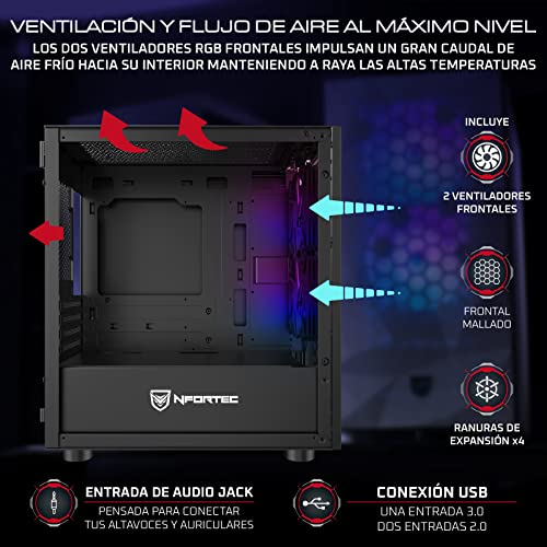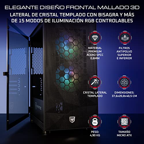 Nfortec Eris Torre Gaming RGB de Frontal Mallado con Relieve 3D y...