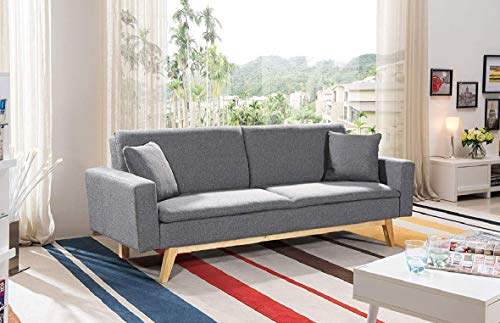 - DISEÑO. Sofá de dos plazas, sinónimo de máximo confort con un asiento firme y un respaldo de firmeza media, lo que le proporciona una gran durabilidad en el tiempo. Incluye dos prácticos cojines, tapizados en el mismo tejido que el sofá. Tela de alta calidad en color gris con tratamiento antimanchas.