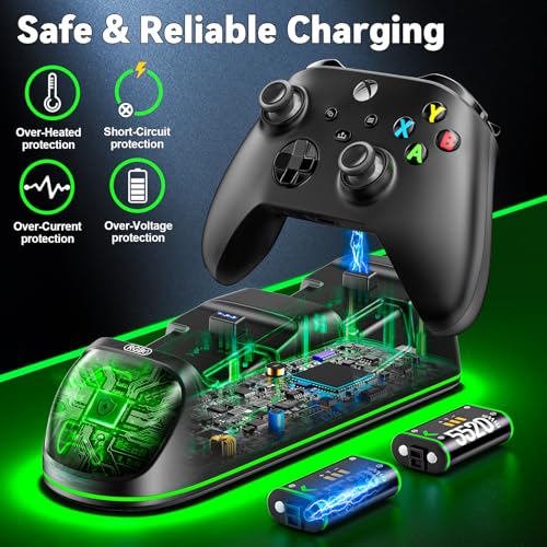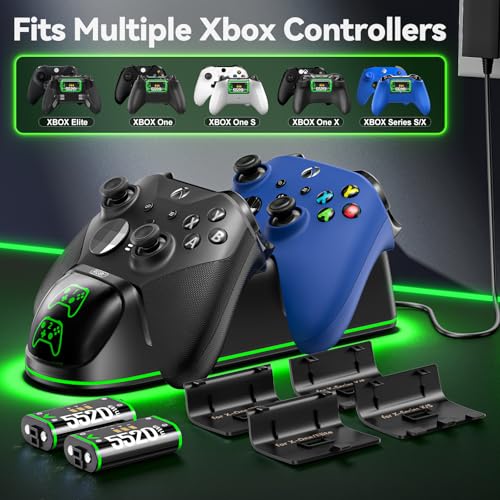 OIVO Xbox One Mando Cargador, Estación de Carga para Xbox One/One X/One S/One Elite, Base de Carga Rápida con 2 x 600mAh Baterías Recargables