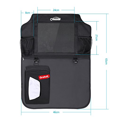 - Protector de asiento de automóvil para niños: un protector de asiento de automóvil para mantener su automóvil limpio y ordenado. Hay un soporte transparente para tableta en el interior, lo que permite que el asiento trasero disfrute del momento feliz de mirar la tableta mientras viaja