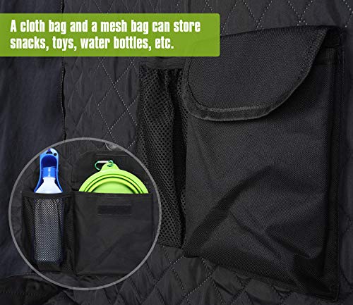 - PRÁCTICO BOLSILLO: La funda de perro incluye un práctico bolsillo en el que podrás guardar algún juguete para perros u otro tipo de accesorio, y cuenta con aberturas para los anclajes del cinturón de seguridad.
