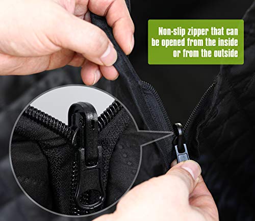 - Uso versátil: hay una cremallera vertical en la ventana. De este modo, puede doblar la parte superior de la ventana hacia la izquierda/derecha. Una vez que se baja la cremallera, la persona puede sentarse en el asiento trasero con el animal, lo que puede reducir la ansiedad del animal durante el viaje. Además, tiene muchos usos, como funda de asiento trasero, maletero y alfombra para el ocio al aire libre, lo que lo convierte en un elemento imprescindible para tus viajes por carretera.