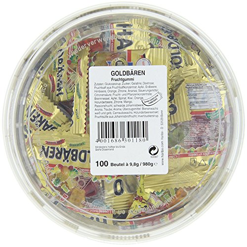 HARIBO Ositos Dorados, Gominolas de Fruta, 100 Bolsitas, Tarro de 980 g