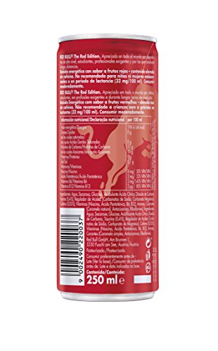 Red Bull Red Edition contiene los mismos ingredientes de alta calidad que el Red Bull Energy Drink con un dulce sabor a frutos rojos.