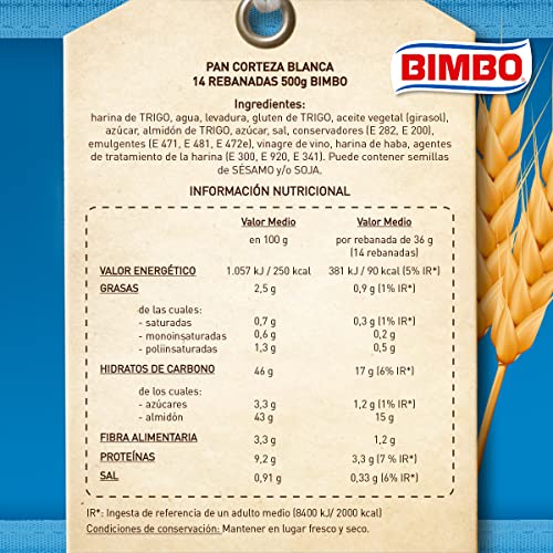 Bimbo Corteza Tierna Pan Blanco - 18 rebanadas - 460 g
