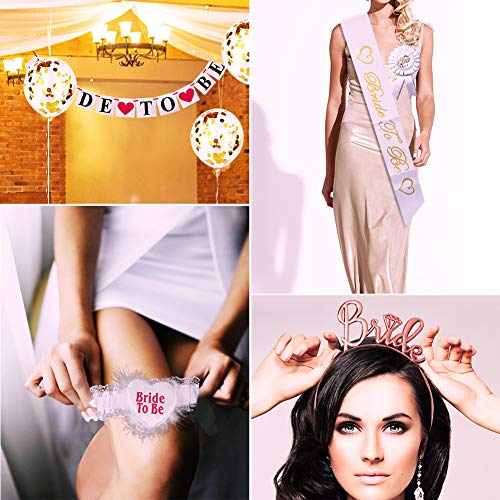 38 Piezas Bride to Be Accesorio Set Kit, Velo Blanco de Novia de Boda con Peine, Bride to be Insignia Liga Banda Pancarta Gafas Globos para Suministros de...
