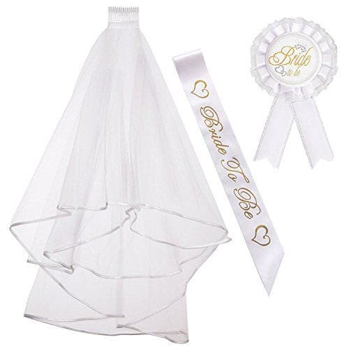 ResPai Hen Do Party Accessories Bride To Be Sash Velo de Novia + Bride to be Insignia Liga Pancarta para Disfraces de Fiesta de Despedida de Soltera Novia a...