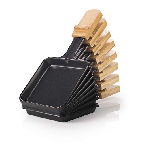 - Parrilla y raclette Princess Pure 8. La plancha se calienta muy rápidamente gracias a la potencia de 1200 W. La gran superficie para cocinar mide 41,8 x 23 cm para que puedan reunirse alrededor de ella y disfrutar cocinando juntos hasta 8 personas. Junto con la raclette, recibirás 8 sartenes y 8 espátulas de madera para que gires y retires la comida sin dañar el revestimiento antiadherente. Las sartenes son Óptimoes para cocinar huevos, creps o queso fundido