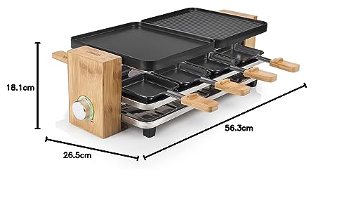 Princess 162910 Raclette Pure 8 – Parrilla, Plataforma para Sartenes, Estructura de Bambú [Clase de eficiencia energética A]