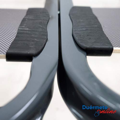 - Pletinas soldadas; ambos somieres están trabajados en pintura epoxy con tratamiento anticorrosivo, secado al horno; fácil montaje; fabricada en españa