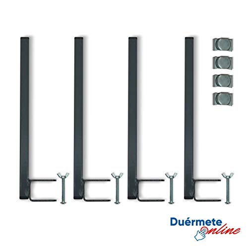 - El conjunto incorpora 4 patas abrazadera para colocar en la parte superior de la cama, (importante) colocarlas según fotografía así podrá entrar la cama inferior debajo de la superior