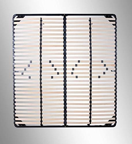 - Cualidad: Estructura de acero inoxidable resistente. Los pies tienen una cubierta de plástico para que el piso no se dañe. 28 tiras de madera por lado con máx. Distancia de 3 cm entre las tiras (un total de 56 tiras) - adecuado para cada colchón.