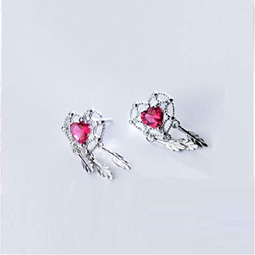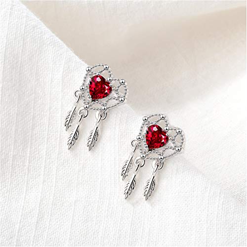 EUMI Pendientes Colgantes Pendientes Plata de Ley 925 Mujer Corazón con Circonitas Rojas de Diamantes, Fiestas, cumpleaños