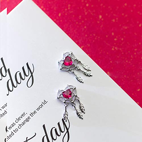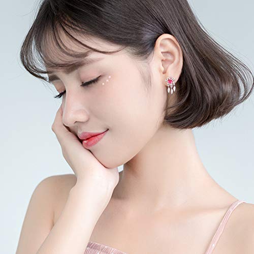 - Tamaño y Material ♥ Plata de Ley 925 con Circonitas Rojas de Diamantes, Pendientes dimensión: 1.9*1.1cm.