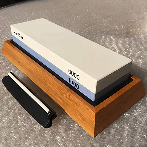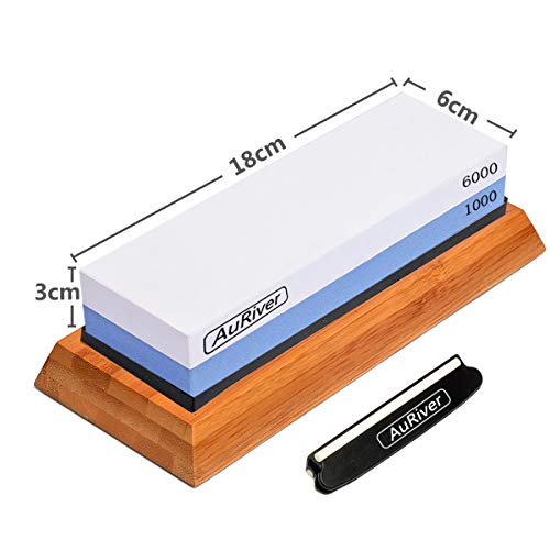 - ✅ PAQUETE SUPERIOR: Su kit completo para afilar cuchillos viene con una piedra de afilar de alta calidad (doble punta) (# 1000 / # 6000), base de bambú para sostener la piedra, guía de ángulo de afilado de cuchillos, un sencillo manual de instrucciones y eBOOK detallado con muchos TIPS & TRICKS que atractivo en todos los niveles de habilidad.