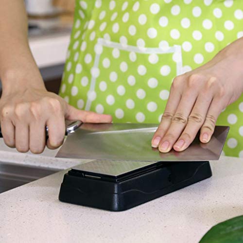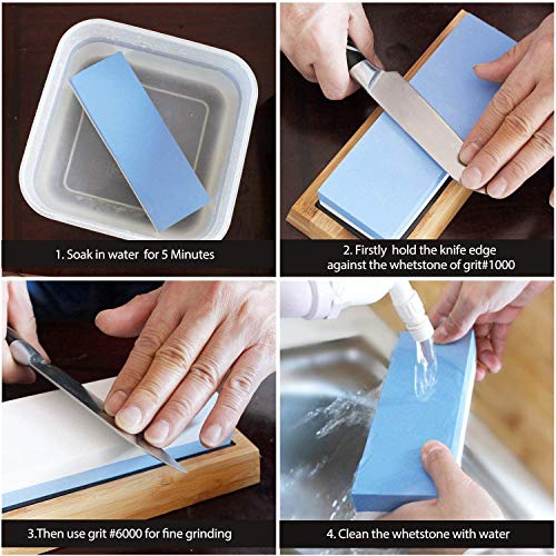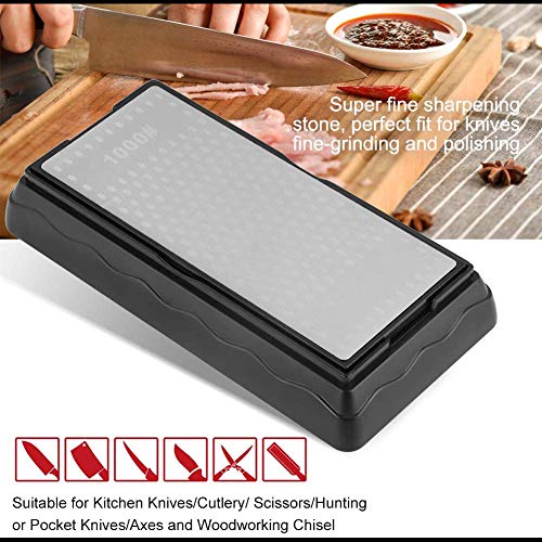 - 【Piedra de afilar 2 en 1】① Lado grueso (grano 1000) para afilar la cuchilla, afila rápidamente cuchillos desafilados o dañados, y hace que la muesca y la falla se aplanen; ② Fine lado (grano 6000) para terminar y pulir la cuchilla para afilar los bordes
