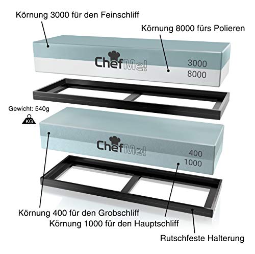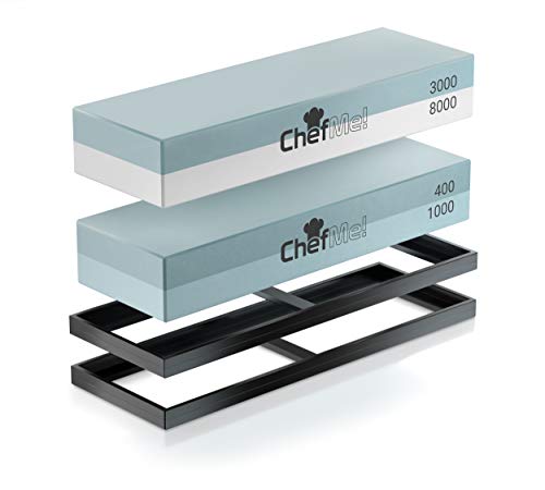 ChefMe! Piedra de Afilar (Set Grano 400/1000/3000/8000) | Piedra para Amolar Cuchillos...