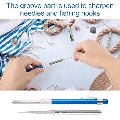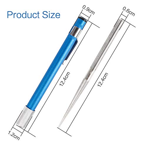 - Mango de agarre fácil: la parte azul de la cubierta del bolígrafo de la piedra de afilar cuchillos retráctil está hecha de óxido de aluminio impermeable, que es cómodo de agarrar y tiene un diseño ergonómico. Al afilar la herramienta, no sentirá fatiga ni se deslizará fácilmente el lápiz afilador.
