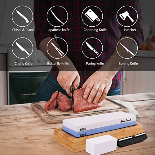 - 【Uso multipropósito】Nuestra piedra para afilar cuchillos de grado profesional es altamente duradera. Este afilador de piedra de afilar puede afilar cualquier cuchilla, juego de cuchillos de cocina, cuchillo de carne, cuchillo de pelar, , cuchillo de carnicero, cuchillo de barbacoa, cuchillo de caza, cincel, navaja de afeitar, ¡incluso puede afilar un hacha!