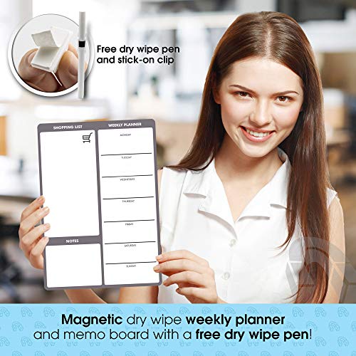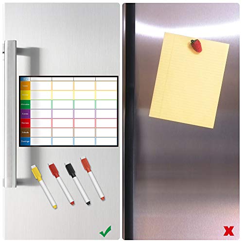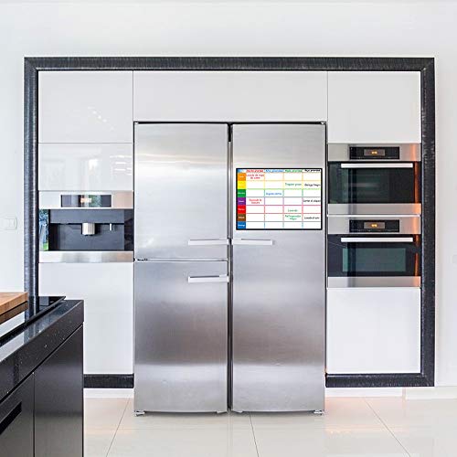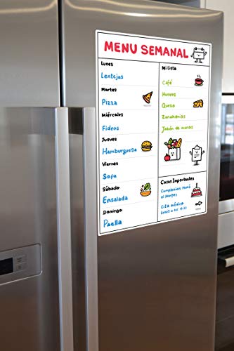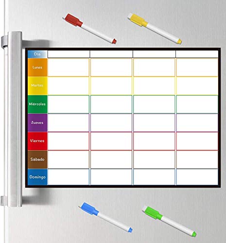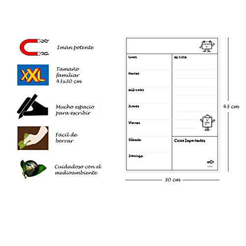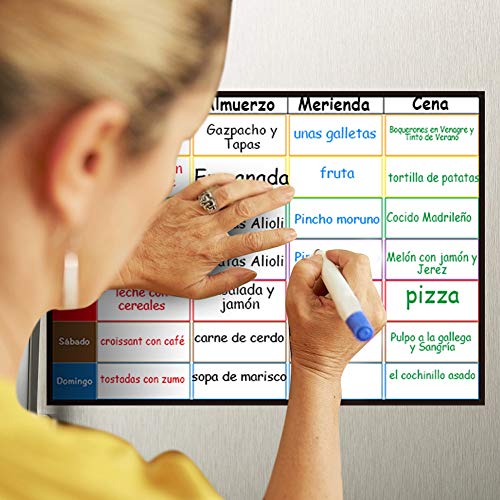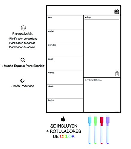 - ORGANIZA TU VIDA CON ESTILO Diseño único y construcción cuidada, muy duradera, encaja perfectamente en tu nevera e incluye 4 rotuladores GRATIS. Se lava en cuestión de segundos, construido para un estilo de vida ajetreado. Todos nuestros clientes están de acuerdo, te hace la vida más fácil. Úsalo para las comidas o las dietas, deberes, exámenes, tareas o estudios. Siente la libertad al instante después de escribir tus primeras tareas.