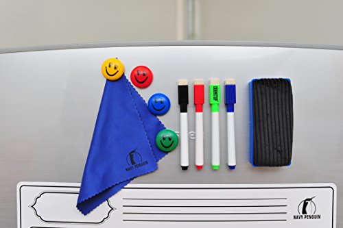 - ROTULADORES GRATIS - Incluimos 4 rotuladores de colores que se borran en seco con cada pizarra. ¡Nunca ha sido más fácil utilizar un código de colores para los alimentos o las tareas! Cada rotulador tiene un imán y una goma de borrar incorporados - simplemente tiene que pegarlo al lado de la pizarra para tener un acceso rápido y fácil.