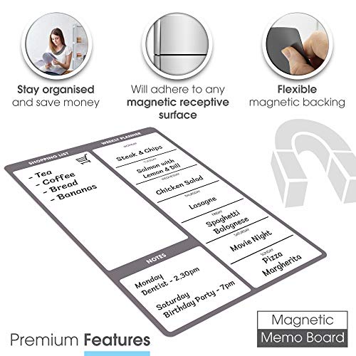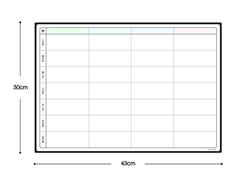 - Este tablero de notas planificador de 7 días / semana completa es perfecto para uso en el hogar y la oficina. Es fácil de adherir a cualquier superficie metálica, por ejemplo. Nevera o archivador. Tamaño 42x30cm con acabado de pizarra blanca de alto brillo.