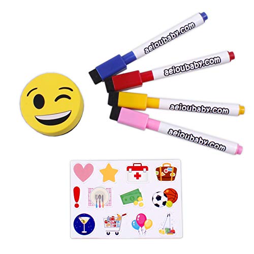 aeioubaby.com Planificador Semanal Magnético, 4 Rotuladores de Colores, 12 Imanes, 1 Borrador...