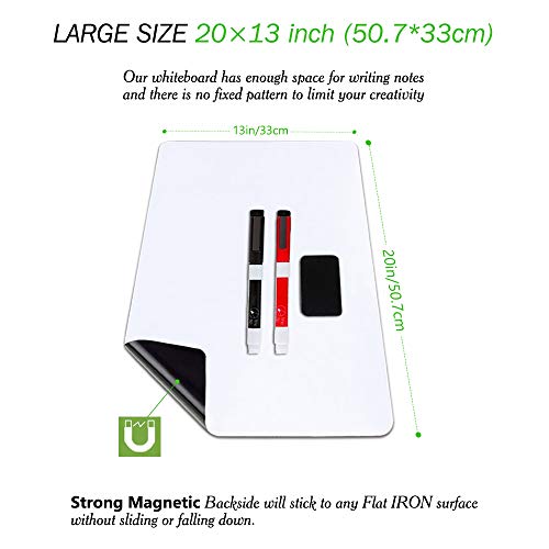 - 【Tableros magnéticos de refrigerador tamaño 20x13 inches más grandes】 Sabemos lo importante que es para usted tener suficiente espacio para escribir notas, recordatorios, planificador de comidas, interacción con el hogar, etc. pero si desea obtener minitarjetas, puede cortar tableros de notas en cualquier tamaño y forma. Depende de usted descubrir más usos.