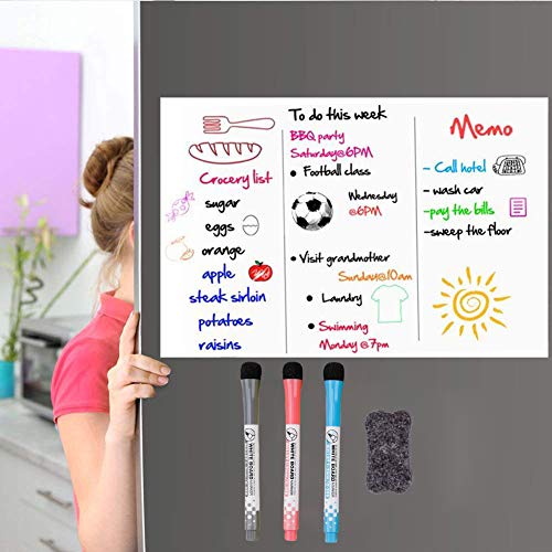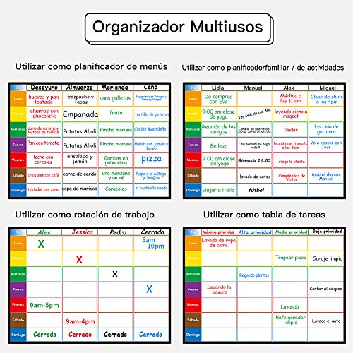 - ORGANIZADOR DE PROPÓSITO MÚLTIPLE: manténgase organizado y controle la vida ocupada de su familia con este planificador de pizarra de borrado en seco. ¡Adjunte este calendario semanal premium al refrigerador de su cocina para ayudarlo a realizar un seguimiento de las actividades, citas, planificación de menús, horarios de trabajo, nuevos eventos, lista de tareas, mensajes, recordatorios, actividades familiares para adultos o niños!