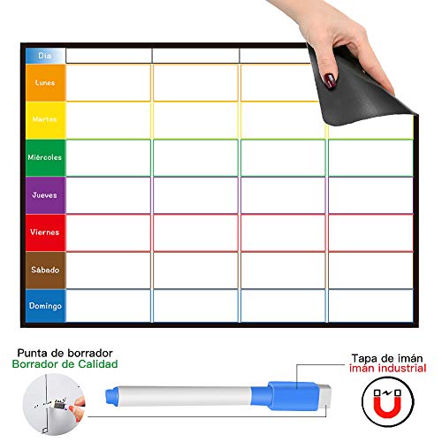 Planificador Semanal Tablero del Frigorífico (42x30cm) con 4 Colores Pluma para Pizarra-...