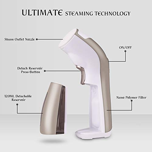 - [Eficiente y rápido] El voltaje de la Plancha Vertical Viaje es de 900W. Viene con un tanque de agua extraíble de 120 ml. Cada relleno se puede rociar continuamente durante aproximadamente 10 minutos con solo 25 segundos de precalentamiento. El vapor a alta presión plancha rápidamente y elimina los olores de la ropa.