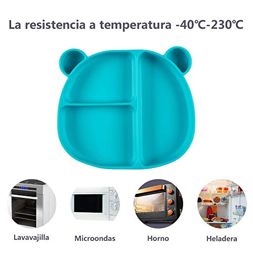 Romote Niños Plato Platos de Silicona Alimentaria de Buena Calidad para Bebé y Niño Vajilla Placa Antideslizante con Compartimientos