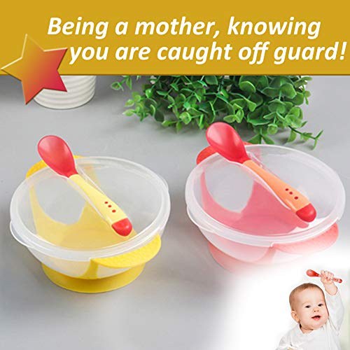 Tazón para bebé - WENTS 2 PCS Tazón con Ventosa para Bebé con la detección de la temperatura PP Material Comestible sin BPA, Anti-caliente