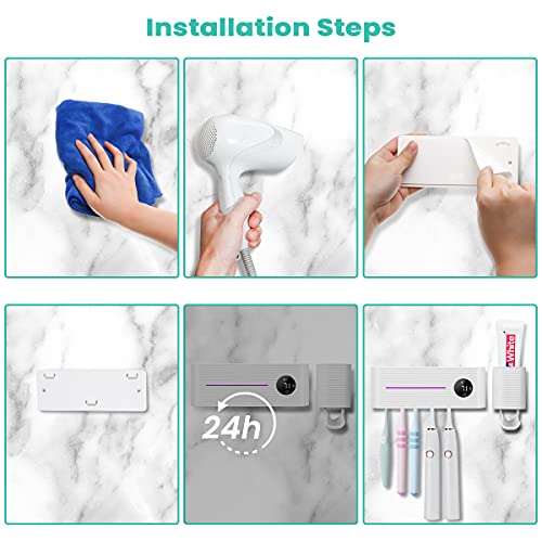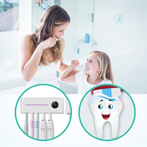 1MECO Portacepillo de Dientes Eléctrico Esterilizador UV con 5 Ports Dispensador de Pasta Soporte Inalámbrico Recargable con Función de Secado Pared Antipolvo Accesorios de Baño para Infantil, Adulto