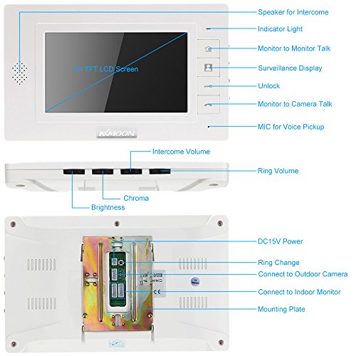 KKmoon 7" Monitor TFT LCD Video Portero Interfono Intercom (Cámara de Vigilancia,...
